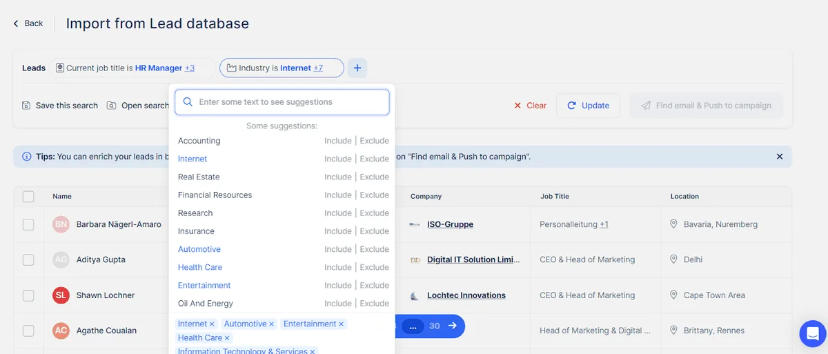 Finding the right contacts should feel like a treasure hunt, not a shot in the dark. Lemlist offers a massive B2B database of over 450 million verified contacts. You can filter leads based on criteria like company size, industry, and location. Need to target small tech startups in San Francisco? Lemlist's database makes it easy. Using an unverified database risks wasting time reaching out to irrelevant or incorrect contacts. Lemlist ensures you’re hitting the right inboxes, making your campaigns more effective.