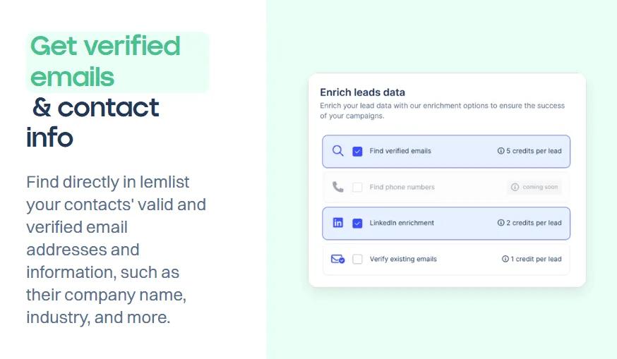 Email Finder and Verifier Tool: Struggling to find the perfect contact? Enter only a first name, last name, and company name, and Lemlist’s built-in tool will find and verify email addresses for you. This feature ensures you’re reaching the right person every time.