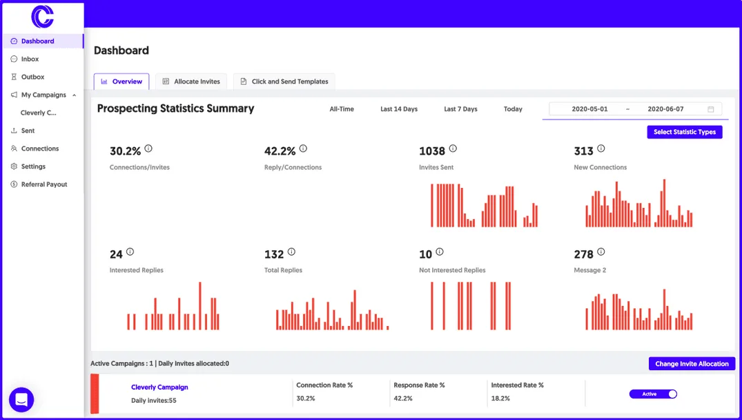LinkedIn Optimization: One of Cleverly’s strong suits is LinkedIn. With tools specifically designed for LinkedIn outreach, you'll find that connection requests and follow-ups get handled smoothly. Think of Cleverly as your LinkedIn expert.
