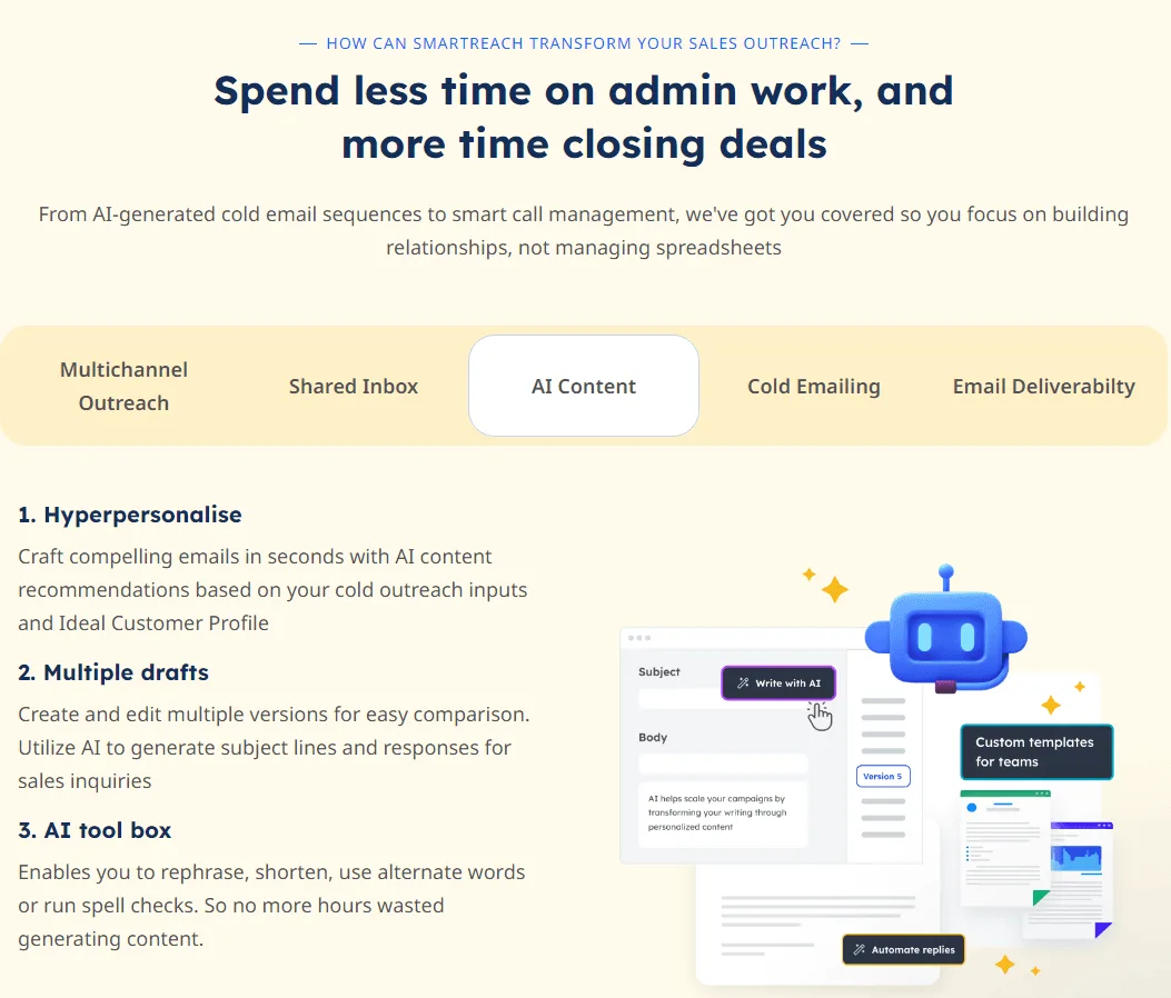 Content is king, and SmartReach helps you produce top-quality messaging with these AI features:
