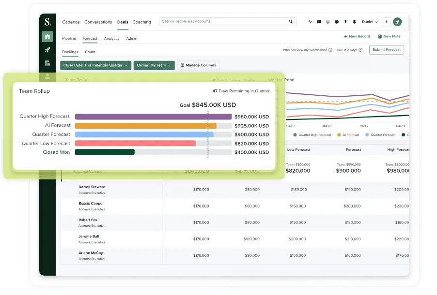 SalesLoft offers comprehensive sales engagement features like call tracking, email scheduling, and social media integration. These features automate and simplify the follow-up process, ensuring you never miss a touchpoint with a prospect.